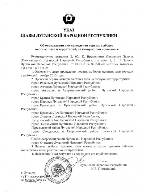 Об этом стало известно из "указа" Плотницкого, который обнародовал в понедельник сайт боевиков ЛИЦ.