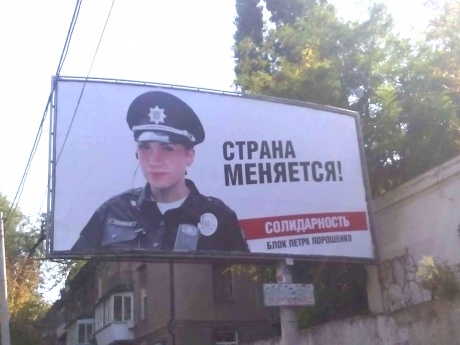 Как известно, ранее в сети появились фотографии предвыборных билбордов "Блока Петра Порошенко "Солидарность" с лозунгом "Страна меняется" и изображением представительницы новой полиции. Сообщалось, что реклама размещена в Одесской области.