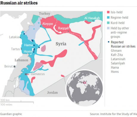Информацию об атаках российских самолетов на северо-западные районы подтвердил представитель Сирийской гражданской обороны, сообщает The Guardian.