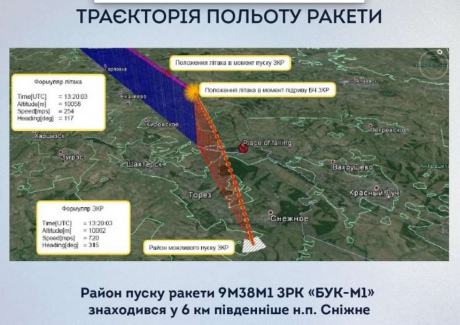 По результатам расследования, проведенного украинской стороной, ракета БУК была выпущена по Боингу МН17 из Снежного, контролируемого боевиками.