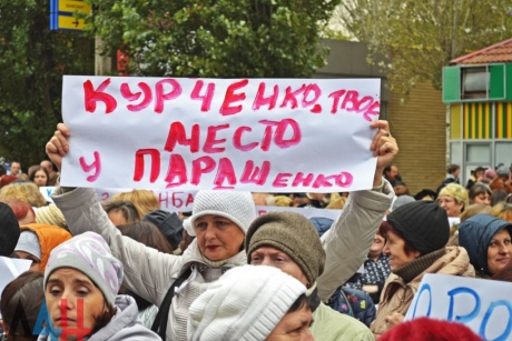 В оккупированном Донецке в среду около 600 людей вышли к зданию "Донецкоблгаза" с протестом против действий беглого олигарха Сергея Курченко, обвиняя его в саботаже поставок газа в "республику".
