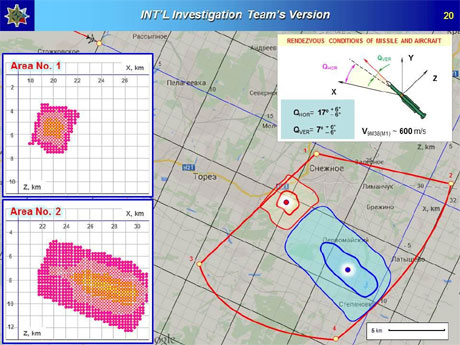 Как известно, в отчет внесены все три версии предполагаемого места запуска ракеты : международной комиссии, Украины и России. В этот же день Алмаз Антей заявил, обвинили в запуске ракеты украинскую сторону и заявили, что ракета была запущена из Зарощенского, которое не входит в зону ни одной из сторон.