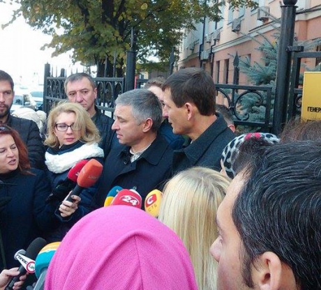 Члены ВО "Свобода" Александр Сыч, Игорь Янкив и Олег Панькевич пришли на допрос следственного управления Генпрокуратуры свидетельствовать по делу о расстрелах на Евромайдане.