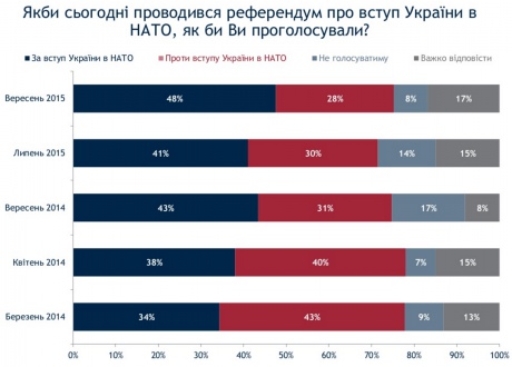 Судя по данным социологической группы, показатель поддержки вступления в НАТО на данный момент является рекордным и растет большими темпами. Так, по состоянию на июль этого года за эту идею высказывался 41% украинцев, а 30% были против.