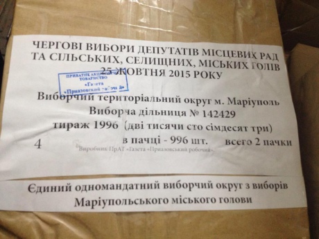 Как сообщает корреспондент "Украинской правды" с места событий, члены горизбиркома прибыли в топографию газеты "Приазовский рабочий" (фактическим владельцем газеты является компания СКМ). Однако они заметили на пачках с бюллетенями и в самих бюллетенях брак.