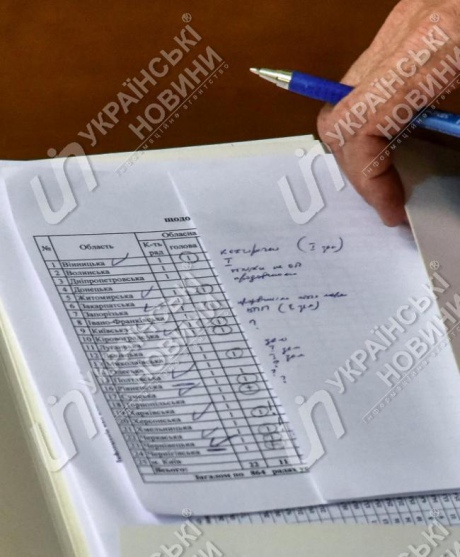 В папочке Кириленко лежит табличка с пометками напротив 10 областей: Винницкой, Житомирской, Запорожской, Киевской, Кировоградской, Николаевской, Ровенской, Херсонской, Черкасской и Черновицкой.