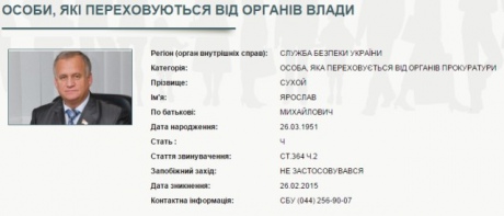 Ярослав Сухой был народным депутатом с 2000 по 2014 год. С 2007 года - от Партии регионов. Входил в сферу влияния акционера "Мотор Сичи" Вячеслава Богуслаева. В марте 2015 года Генпрокуратура предъявила подозрение Сухом в совершении преступлений и объявила его в розыск по делу организации и проведения голосования 16 января 2014 за "диктаторские" законы.