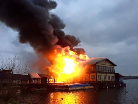 В центре Киева горит ресторан "Веранда" на Днепре.