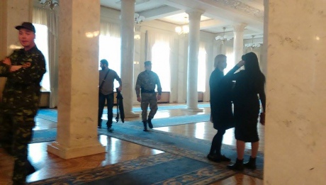 Часть журналистов спустилась на первый этаж, но покидать здание ВР представители СМИ, похоже, не собираются. Позже правоохранители начали выводить прессу.