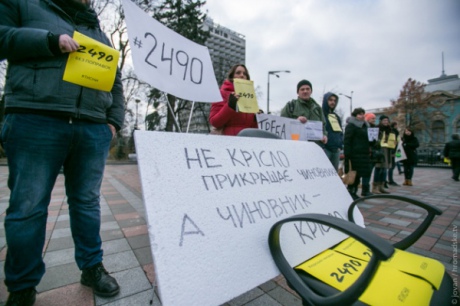 Активисты устроили под Верховной Радой акцию "Тисни" ("Дави") в поддержку законопроекта о государственной службе №2490.