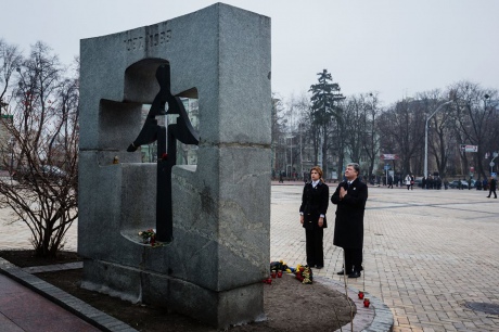 Как сообщили в пресс-службе главы государства, в субботу президент вместе с женой на Михайловской площади в Киеве почтили память жертв Голодомора-геноцида 1932-1933 гг. в Украине.