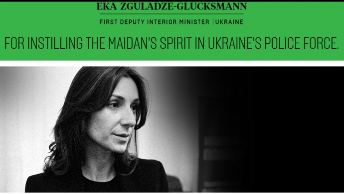 Как сказано на сайте издания, Згуладзе отмечена "за воспитание майдановского духа в украинской полиции".