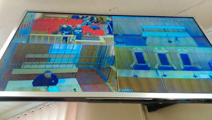 Самого Корбана в зале суда нет. Участие в судебном заседании он берет с помощью видеоконференции из Октябрьского суда Днепропетровска.
