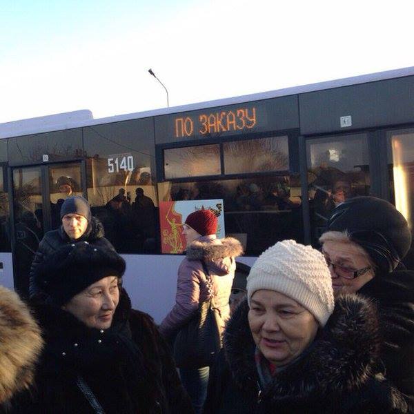 По данным штаба, участников митинга, среди которых есть женщины и дети, было доставлены пятью автобусами из Донецка.