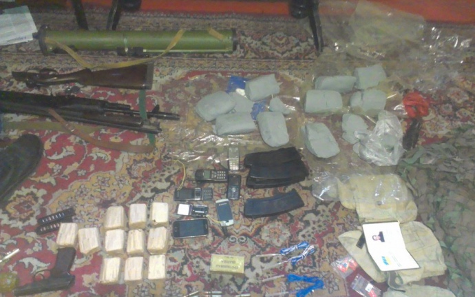Сотрудники спецслужбы изъяли у диверсанта девять килограммов пластида, детонаторы, гранатомет РПГ-26, гранаты Ф-1, автомат Калашникова, пистолет Макарова и патроны различного калибра.