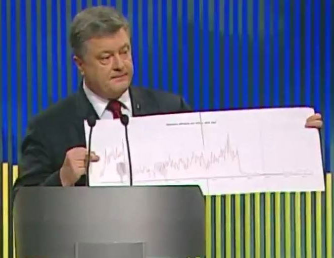 Он привел график обстрелов украинских позиций 2015 года, чтобы продемонстрировать эффективность режима прекращения огня, достигнутого в Минске.