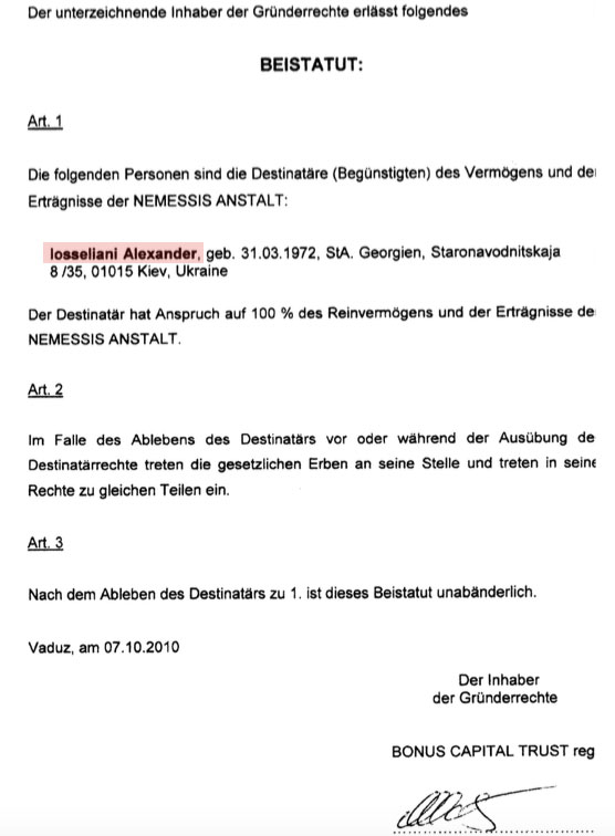 По его словам, из своих источников ему удалось получить документы о конечном бенефициаре лихтенштейнской компании Nemessis Anstalt, которая владеет 100% акций компании Steuermann.