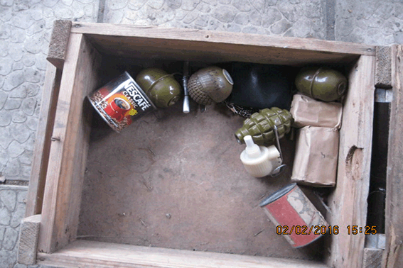 "В ходе проведения оперативно-розыскных мероприятий в полуразрушенном доме в пгт Станица Луганская, принадлежащем мужчине, который в настоящее время является работником полиции "ЛНР", правоохранители обнаружили деревянный ящик, накрытый камуфляжной курткой. Из ящика изъяты четыре ручные гранаты, 49 патронов и две металлические банки емкостью 100 г каждая, наполненные порохом", - сообщили в полиции.