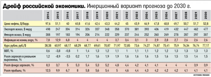 В целом за 2014–2030 года экономика увеличится всего на 13%, а реальный уровень зарплат вернется к планке 2014 года только в 2025 году.