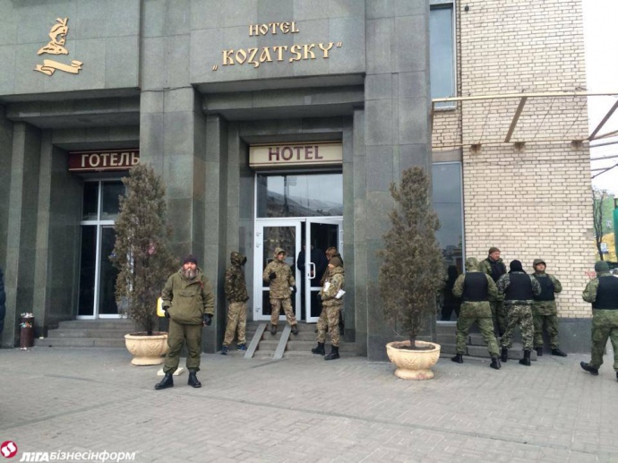 Люди в камуфляже заняли актовый зал отеля Козацкий на Майдане