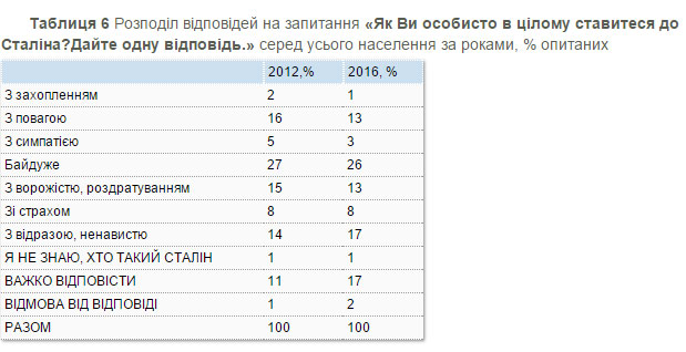 Положительно к деятельности Иосифа Сталина относится 17% украинский, из них 1% с восторгом.