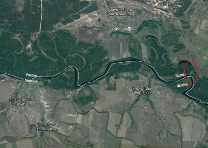 Главное управление разведки заявляет, что Россия переправляет в Украине военную технику не только железной дорогой и автодорогами, но и через понтонную переправу через реку Северский Донец.