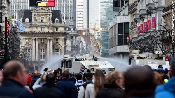 Столкновения в Брюсселе: полиция применила водометы против хулиганов