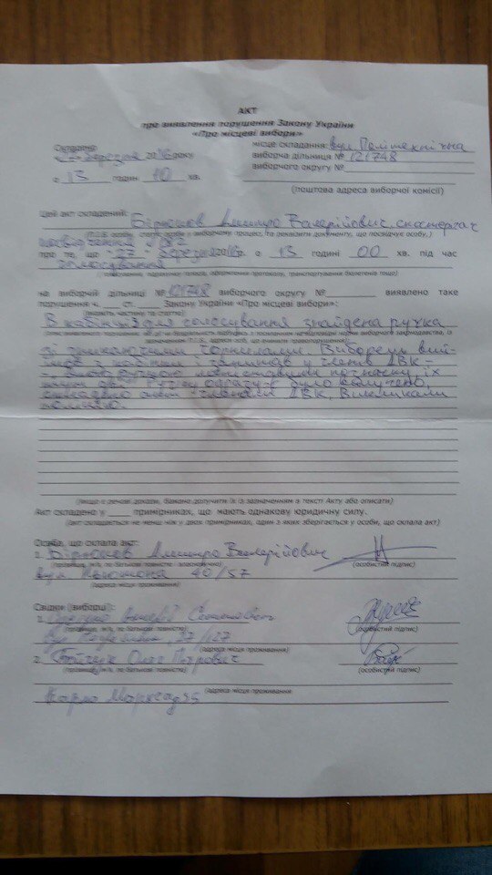 Вместе с тем местное издание 0564.ua сообщает, что на участке №121748 была обнаружена ручку с исчезающими чернилами.