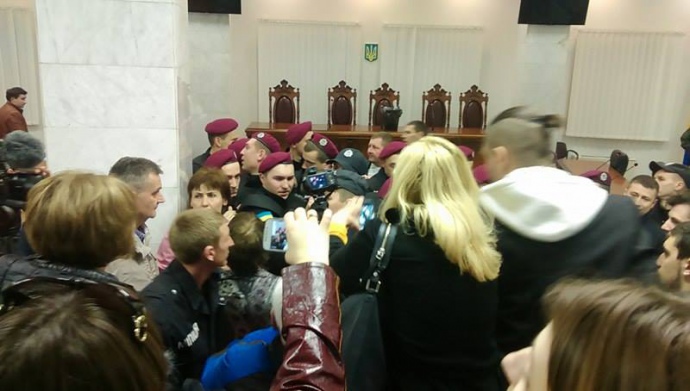 Вместе с тем в суде произошла стычка - один из активистов забрался в президиум и поставил на стол прокурора урну.