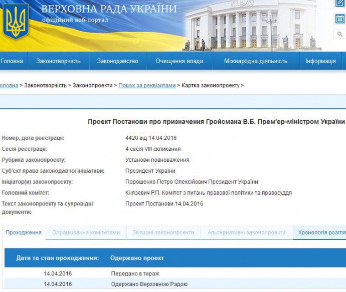 Соответствующий проект постановления №4420 он внес в парламент 14 апреля.