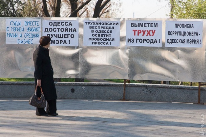 "Все окружающие одесскую мэрию заборы были обклеены антитрухановской агитацией, порой даже оскорбительного характера", - говорится в сообщении.