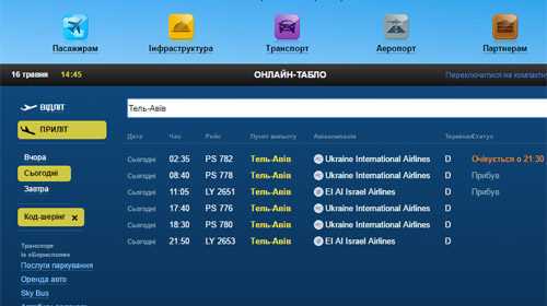 По данным на табло аэропорта Борисполь, обратный рейс Тель-Авив-Киев PS782, который должен был выполнять поврежден авиалайнер, задержан почти на 19 часов.
