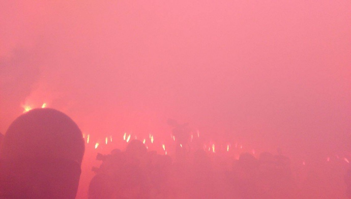 Активисты гражданского корпуса "Азова" использовали файеры и дымовые шашки. По данным полиции, на месте митинга было около 2 тыс. человек.