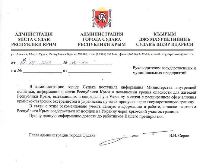 Информацию в администрации городов и районов разослало ведомство "министра правды" Дмитрия Полонского. Он пугает крымчан "крымско-татарскими экстремистами" на админгранице с Крымом и советует не ездить "на Украину" через крымский участок границы", - написал он.