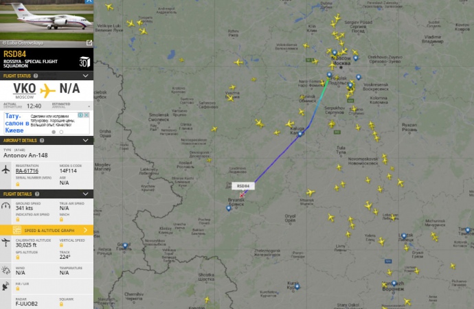 Самолет, который забирал из Украины ГРУшников Александра Александрова и Евгения Ерофеева, вылетел из России в направлении Украины.
