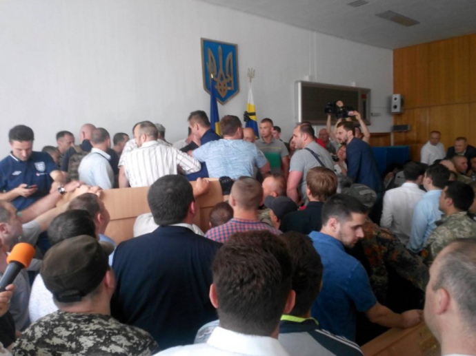 Также, по данным телеканала, на сессии присутствовали бойцы 57 бригады, Правого сектора.