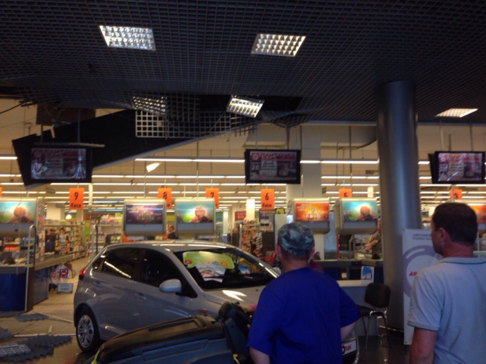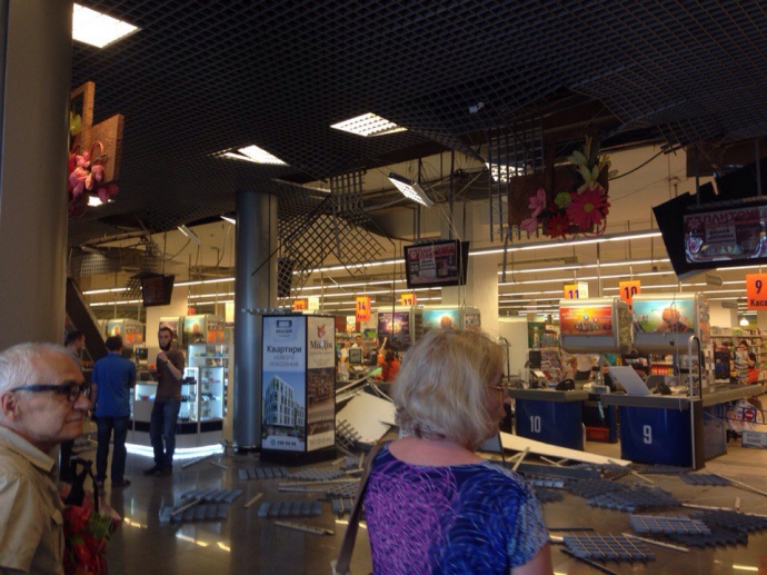 В самом торговом центре говорят, что причина падения навесного потолка им неизвестна.