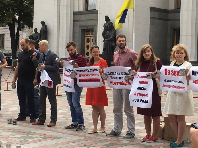 Активісти @ANTAC_ua вимагають біля @verkhovna_rada зняття недоторканості та арешт депутата Онищенка. pic.twitter.com/zS49usNj8S
