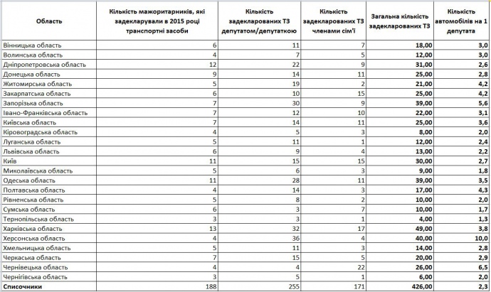 Всего в прошлом году депутаты и члены их семей задекларировали 951 транспортное средство, тогда как в 2014 году декларировали 965 машин, пишет "Опора".