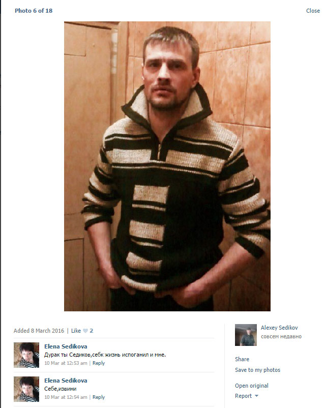 Ранее он сообщал, что прибыл на оккупированные территории лишь в марте 2016 года. 8 марта под одной из его фото размещен комментарий его жены: "Дурак ты, Седиков, себе жизнь испортил и мне".