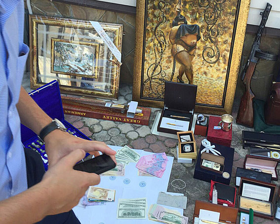 В помещениях подозреваемого правоохранители провели обыски и изъяли деньги, предметы антиквариата, оружие и ценные подарки.