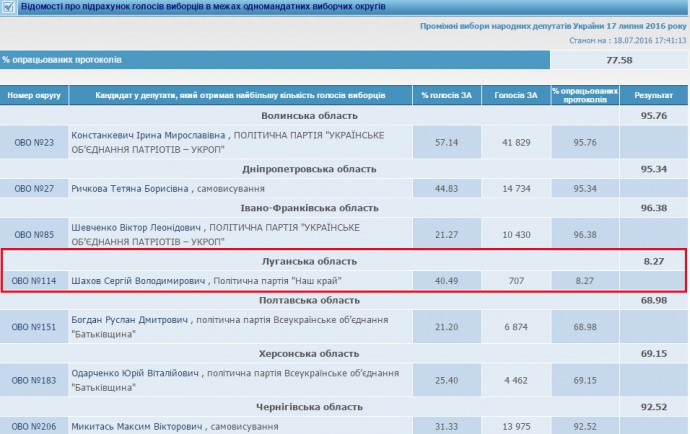 По состоянию на 17:59 комиссия обработала только 8,25% протоколов. Эта цифра не менялась с самого утра. Зато комиссии в других округах обработали немногим более половины, в некоторых округах подсчет голосов приближается к 100%.
