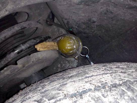 Утром он увидел спущенную шину на одном из колес. Заглянув под машину, обнаружил прикрепленное к колесу взрывное устройство.