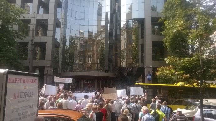 Вкладчики банка "Михайловский" пикетируют здание, где находится Фонд гарантирования вкладов по адресу Сечевых стрельцов 17 в Киеве.