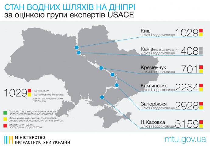 "Американские инженеры завершили техническое обследование 5 шлюзов на Днепре, выводы отчета - это неудовлетворительное состояние объектов и необходимость срочной реконструкции. Для решения этого вопроса министерством запланировано финансирование из фонда бюджетной поддержки от ЕС в размере 105 млн гривен, чтобы избежать опасности", - сообщил Омельян.