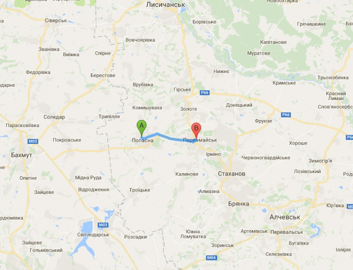 В зоне проведения АТО боевики обстреляли дорогу, которая связывает н.п. Попасная и Первомайск.