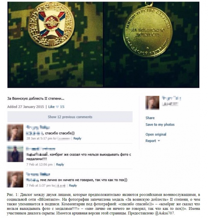 "Мы можем доказать, что в 2014 и 2015 году количество вручаемых медалей внезапно и резко возросло по сравнению с количеством медалей, вручавшихся до 2014 г. Значительное число медалей "За боевые отличия" – с 07.11.2014 по 18.02.2016 было вручено 4 300 таких наград – указывает на то, что в этот период российская армия принимала активное участие в крупных боевых действиях", - говорится в отчете.
