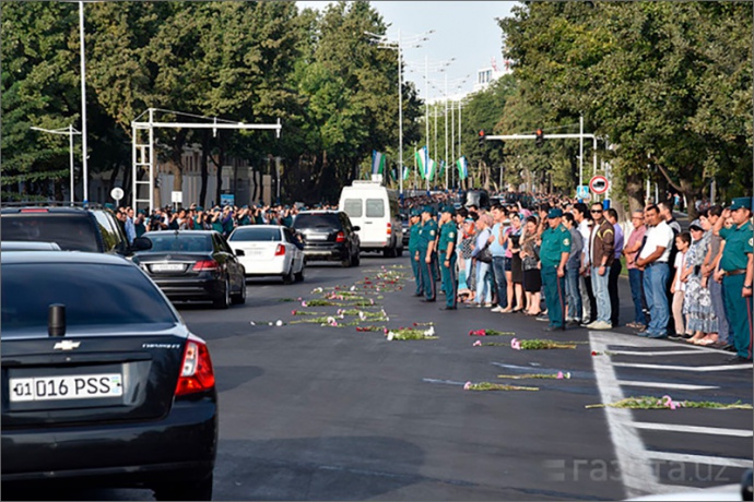 В Самарканд тело Каримова доставили из Ташкента. Там с 4:00 утра вдоль "президентской трассы", по которой Каримов ежедневно ездил на работу и обратно, выстроились тысячи жителей, чтобы проститься с президентом Узбекистана, пишет Фергана.