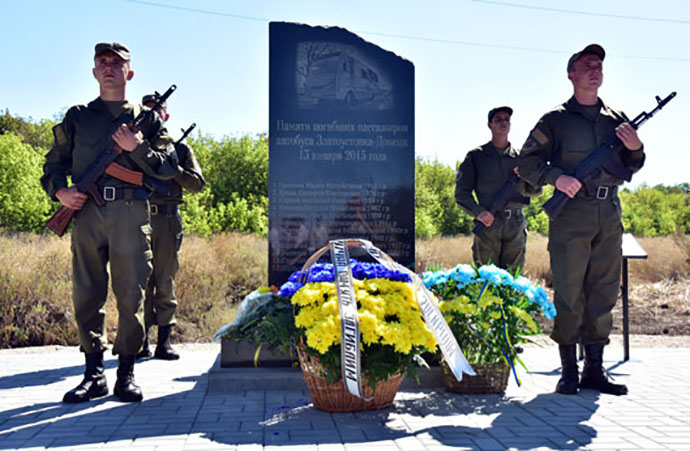 В субботу возле Волновахи открыт монумент с именами 12 погибших от обстрела рейсового автобуса с мирными жителями 13 января 2015 года.