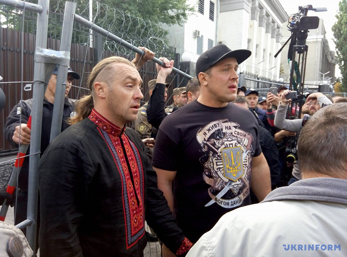 После этого активисты во главе с депутатом Киевского горсовета, бывшим народным депутатом-"свободовцев" Игорем Мирошниченко начали расшатывать забор. Правоохранители оттеснили протестующих, заградительная сетка повреждена.